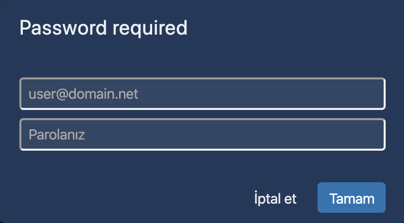 Belirttiğiniz yöntemle gözdem kaçırdığım “Password required” kısmını bulup türkçeye çevirdim.
