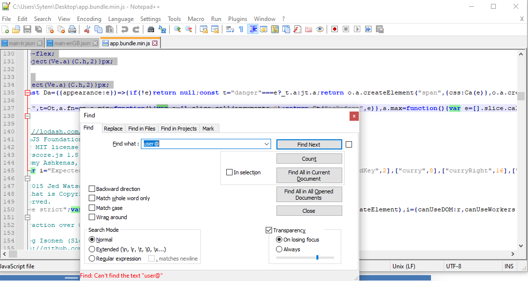 Alttaki Parolanız kısmınıda görebiliyorum ama ne kadar ararsam arayayım. “user@domain.com” yazısını nerden çekiyor bulamadım aramaya devam ediyorum ben. uygun bir vakitti eğer bulursanız. hangi dosya içerisinde olduğunu söylerseniz memnun olurum. Belki gözden kaçırıyorumdur. ama sanırım farklı bir yerden çekiyor gibi.